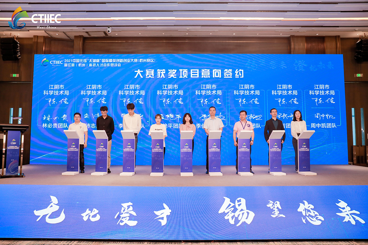 根据大赛规则,本次大赛优胜奖获得者项目在江阴注册落地的将在“暨阳英才计划”中给予优先支持。现场,本次大赛获奖项目与江阴市科学技术局进行意向落户签约。